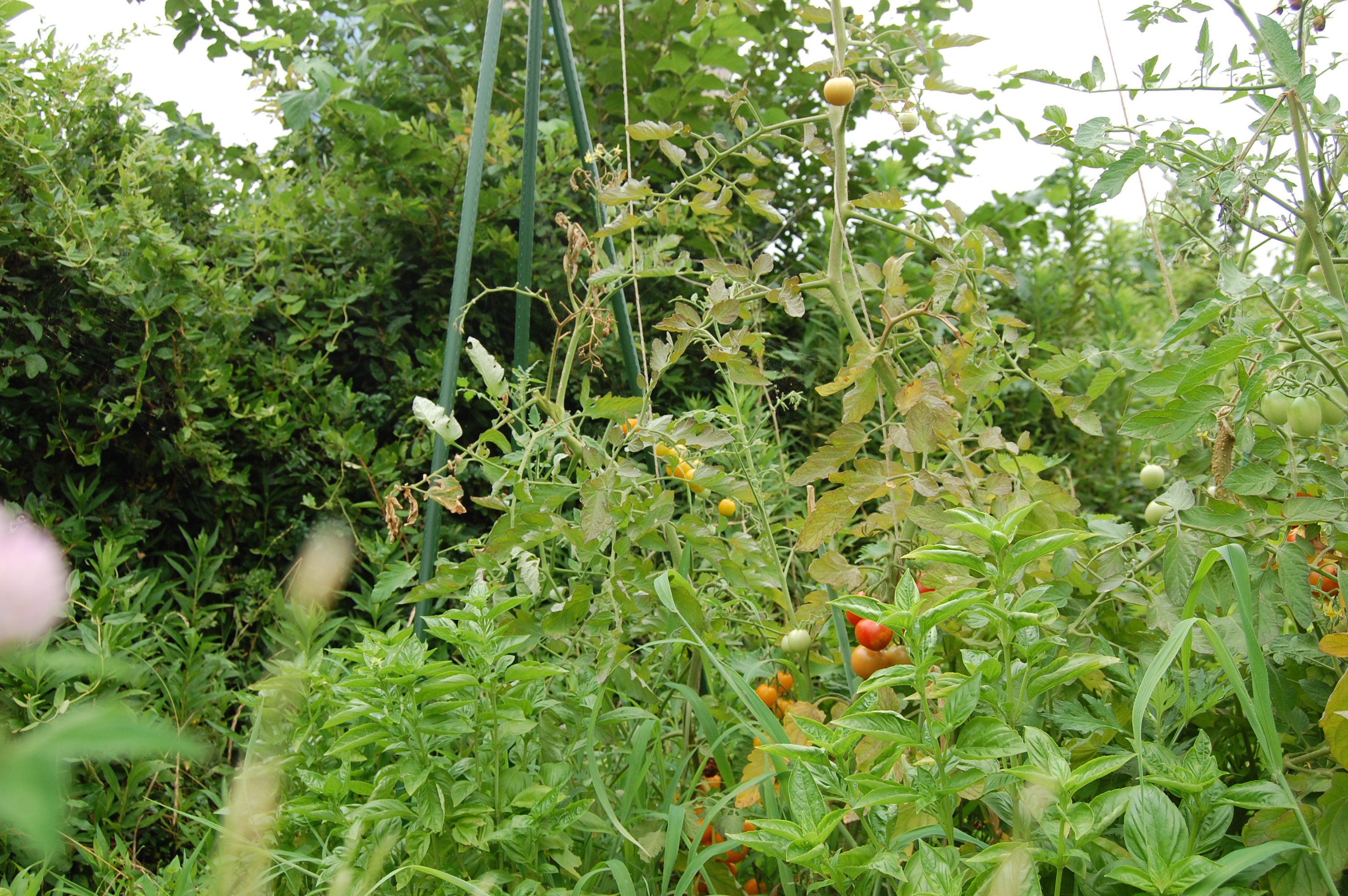 協生農法の実験地区のようす。トマトとバジルの組み合わせが見られる。
